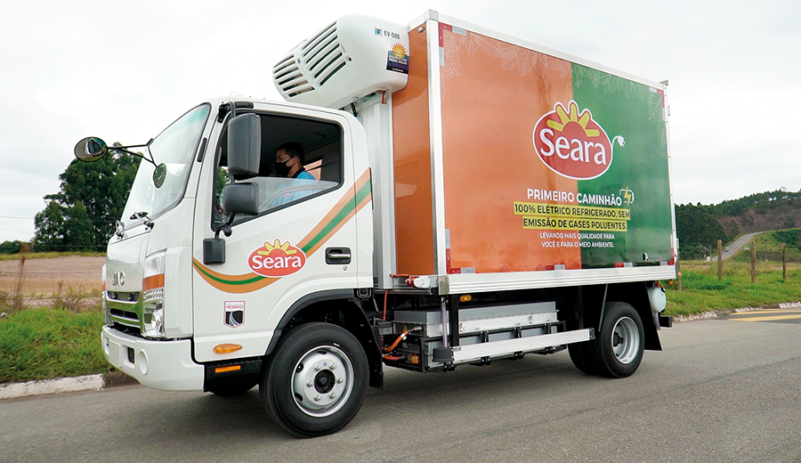 Um bom exemplo entre as companhias que estão adotando frota verde é a JBS. Segunda maior empresa de alimentos do mundo e líder no setor de proteína, assumiu em março o compromisso de se tornar Net Zero até 2040, ou seja, zerar seu balanço líquido de emissões de gases causadores de efeito estufa e eliminar as residuais, e iniciou o transporte de carga da Seara com caminhão 100% elétrico.