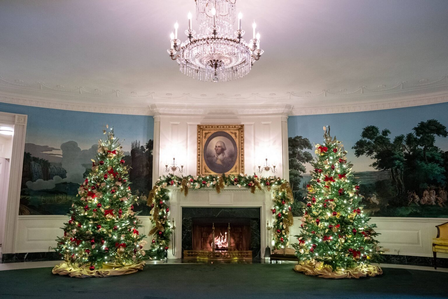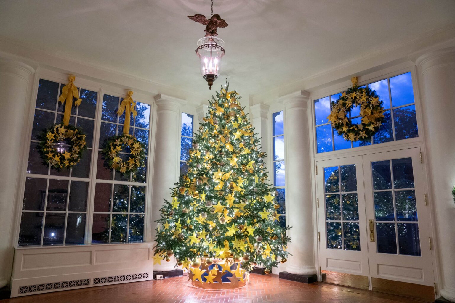 Mas, como na música, então é Natal. E a Casa Branca segue a tradição de mostrar uma decoração, senão grandiloquente, que tributa a festa cristã. Sob responsabilidade da primeira-dama Jill Baden, os arranjos externos e internos das muitas salas de alguma forma tributam os trabalhadores que se sacrificaram para conter o avanço da Covid-19.