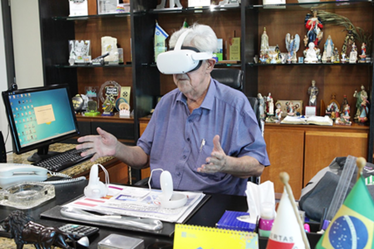 “Serviço público que não acompanha a modernidade certamente não vai atender desejo do cidadão”, disse o prefeito, justificando a presença na reunião e agradecendo a Sapiens Agro pelo ato de ineditismo. Ele precisou colocar um óculos especial para “entrar” no metaverso.”