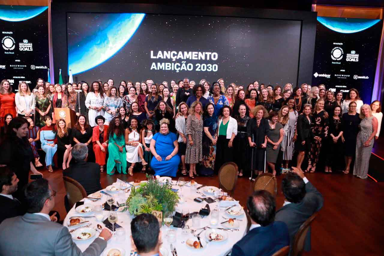 O evento de lançamento do Ambição 2030 foi realizado no Rosewood São Paulo, com apoios da Ampibar, do Instituto Brasileiro de Governança Corporativa (IBGC) e da Câmara de Comércio Internacional (ICC Brasil). A Ambição 2030 conta com o apoio de sete empresas embaixadoras: Instituto Sul-América, Animale, Uber, Aegea, KPMG, Ambipar e Movimento Mulher 360.