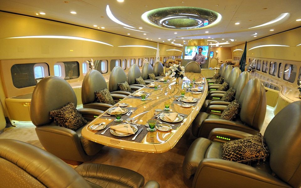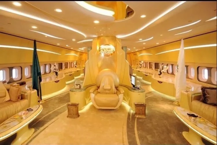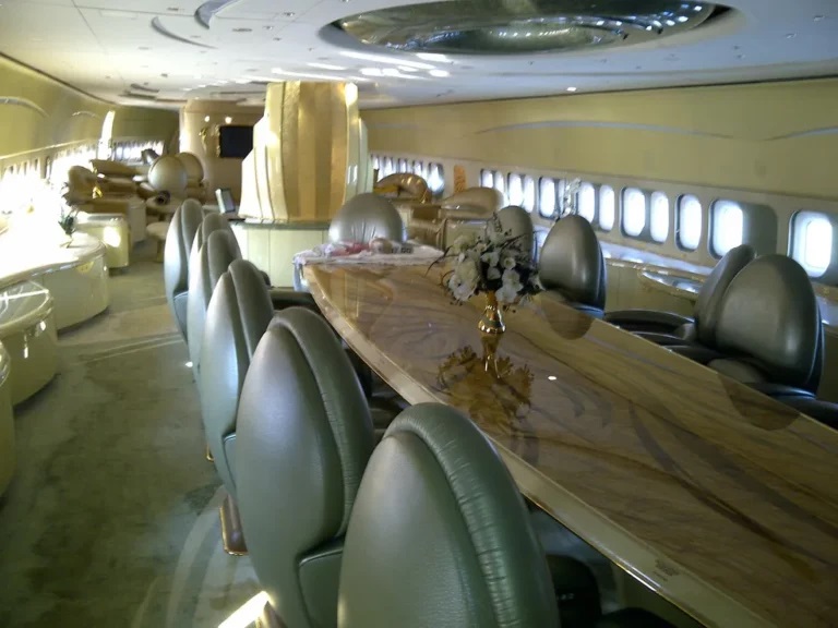 Com uma capacidade de transportar até 400 pessoas, o avião é um verdadeiro palácio voador. Seu interior é composto por sofás em couro, detalhes em madeira de alta qualidade e uma ampla variedade de espaços para socialização e relaxamento. Desde uma suíte master para momentos de privacidade até um salão de jantar onde refeições gourmet são servidas, o avião proporciona uma experiência luxuosa sem precedentes.