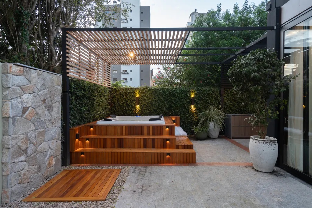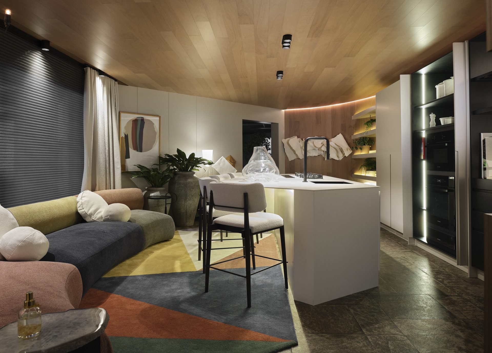 O espaço ‘Cobertura Pra Viver’ de Luiz Sentinger, para o evento, proporciona comodidade e conforto com seus ambientes integrados pensados exclusivamente para trazer equilíbrio entre corpo e mente. Em 120 m², o ambiente integra sala de estar e cozinha gourmet e a varanda, que abriga um spa e uma área de churrasqueira.