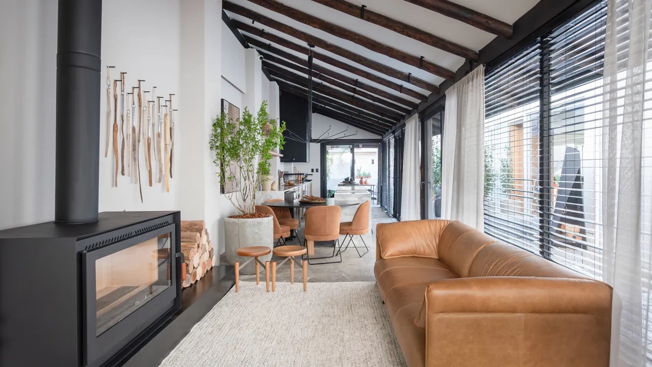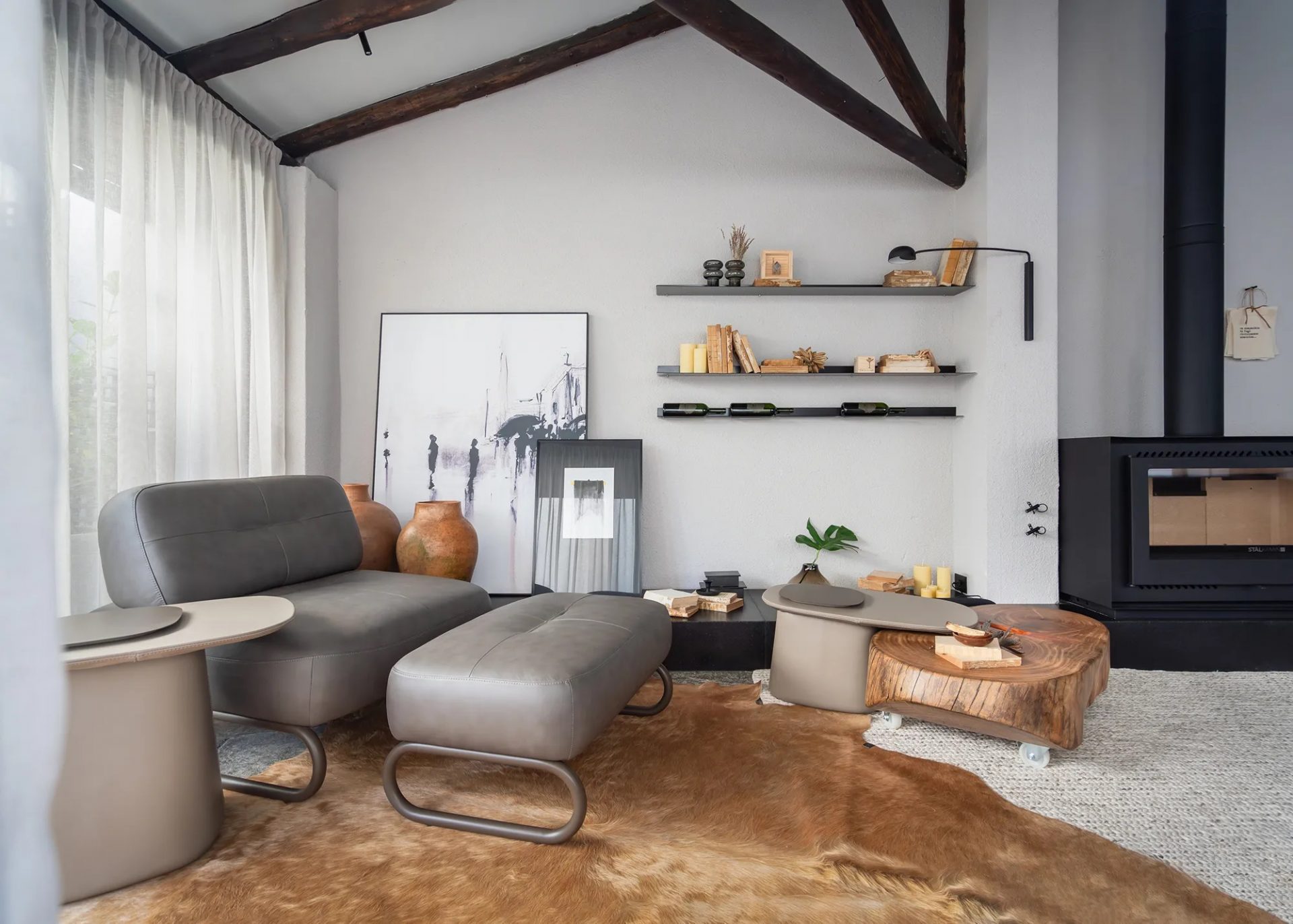 O espaço casa serra e fogo, projeto de 136 m² assinado por Patricia Pasini. A busca por manifestar a identidade da Serra Gaúcha se concretiza em forma de arte, design, numa bela lareira e nos materiais naturais que percorrem todo o projeto, como as pedras naturais e a madeira. O ar de aconchego fica por conta da presença do fogo, que traz acalento para dentro da casa. Aqui, todos os detalhes foram pensados para proporcionar uma experiência única de morar, em um espaço cheio de personalidade, gerando conexão com quem visita o ambiente. Destaque também para o contraste entre os materiais naturais e os texturas rústicas em justaposição com design contemporâneo, que reforça a vocação de receber com conforto e elegância.