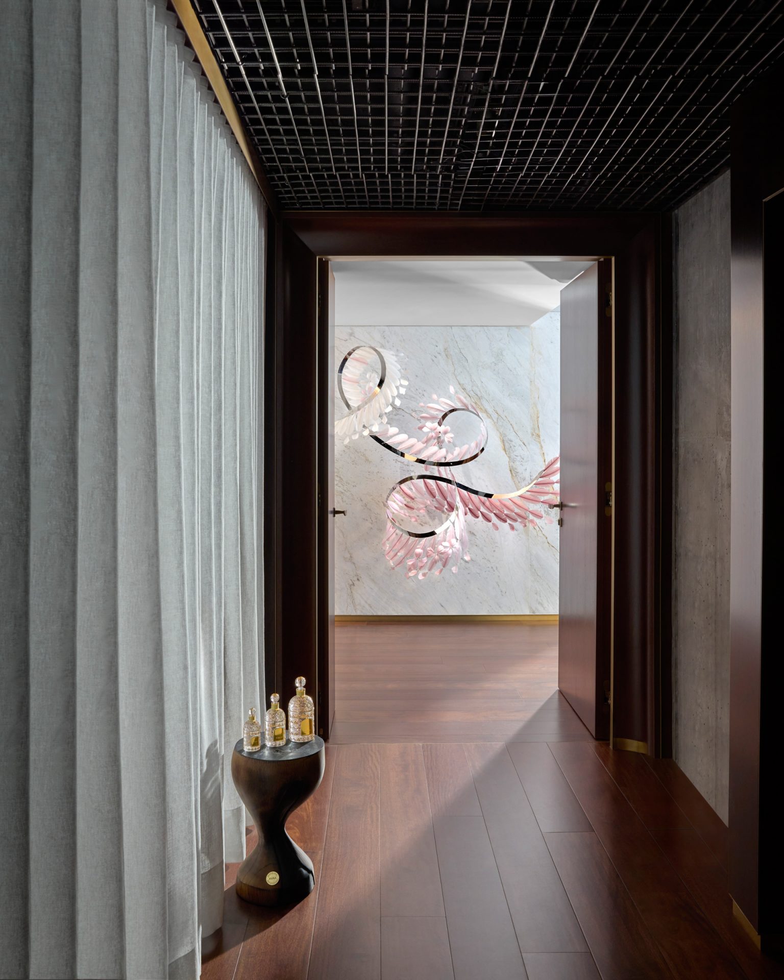 Alinhado com a filosofia A Sense of Place® da Rosewood Hotels & Resorts, o design do ambiente celebra as diversas culturas do povo brasileiro. Simboliza não apenas o compromisso da propriedade com a melhoria das comunidades locais, mas também uma mudança mais ampla na percepção do país sobre beleza e bem-estar. Ao entrar no espaço, os visitantes são encapsulados por elementos de design que exibem com orgulho o artesanato brasileiro através de móveis de origem local e peças cuidadosamente selecionadas, como as do artista Fabiano Senk, que se inspirou nos diversos tons de pele do povo brasileiro, refletindo o espírito vibrante e a diversidade cultural do país.