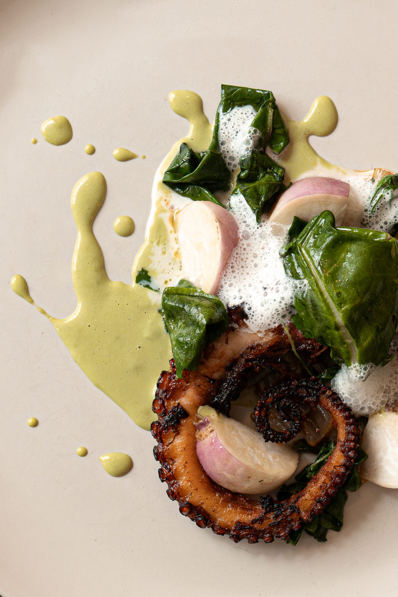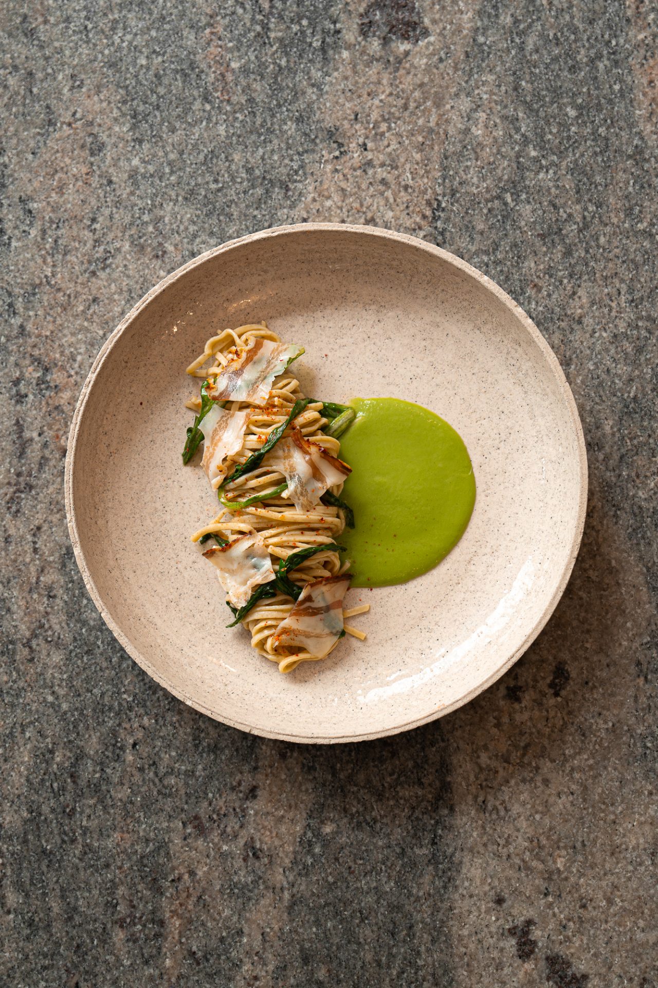 O ambiente é minimalista e acolhedor, com uma decoração que remete ao espírito de resistência e compromisso com a qualidade dos produtos. O cardápio varia de acordo com a sazonalidade, sempre respeitando a oferta do mercado. Além dos pratos, há uma seleção de vinhos naturais e queijos artesanais, reforçando a proposta de valorização dos produtores independentes.